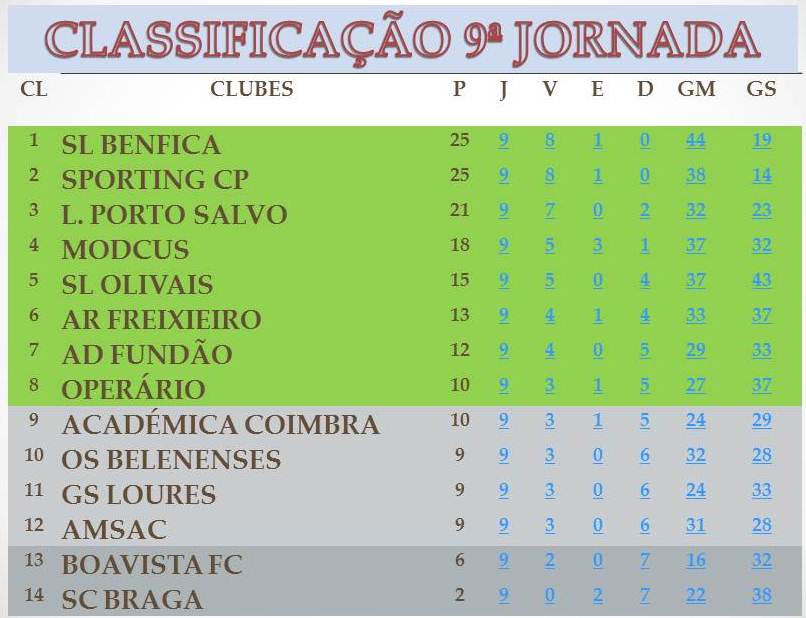 FUTSAL - CLASSIFICAÇÃO ACTUALIZADA