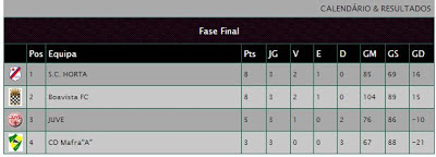 O Boavista venceu o jogo de hoje terminado à pouco e terminou no primeiro lugar, mas se sagrar campeão tem que esperar que o SC Horta não vença o Mafra por uma diferença de 12 golos...