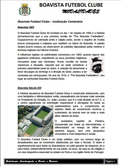 Para vosso conhecimento junto enviamos o “dossier” referente á actividade das Modalidades Amadoras do Boavista F.C. durante a época desportiva que agora termina.