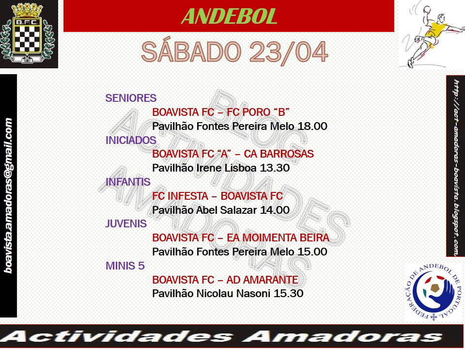 ANDEBOL - AGENDA DESPORTIVA PARA O FIM DE SEMANA