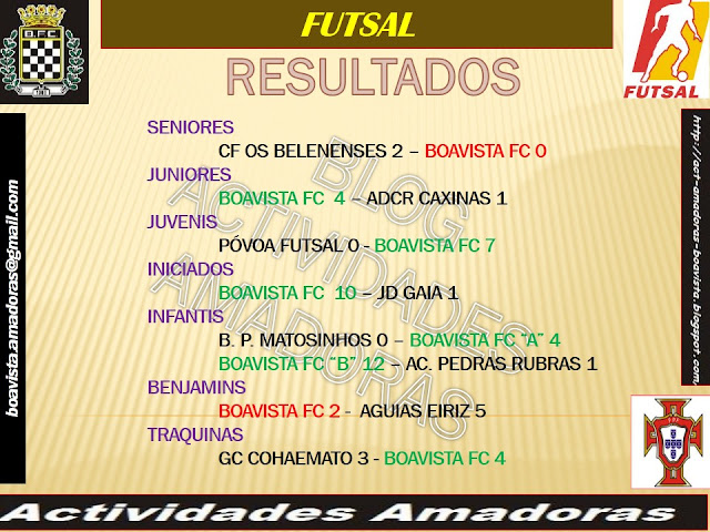 FUTSAL - RESULTADOS DO FIM DE SEMANA