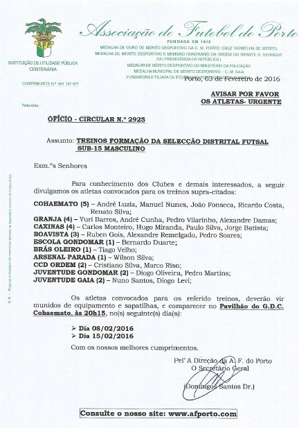 na integra a convocatória da AF Porto