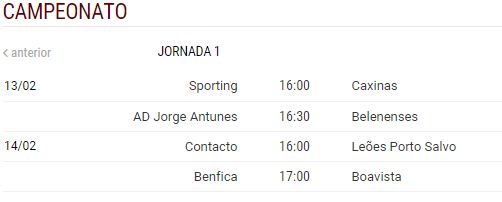Publicamos em seguida os quadros das jornadas da primeira volta.