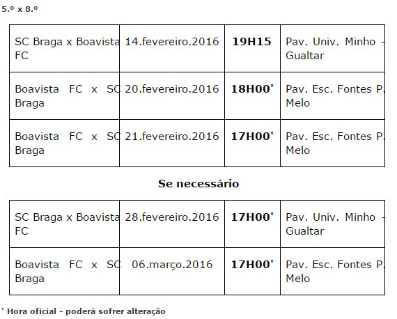 VOLEIBOL - CALENDÁRIO OFICIAL DA FASE DE APURAMENTO DE FINALISTA
