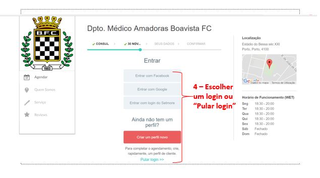 Para proceder à marcação deve-se realizar os seguintes passos: