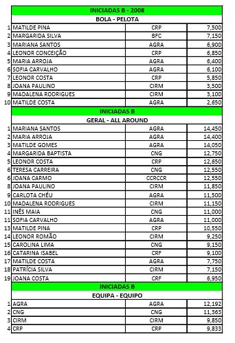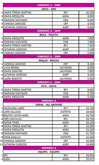 GINÁSTICA RÍTMICA - RESULTADOS DO ENCONTRO AGN