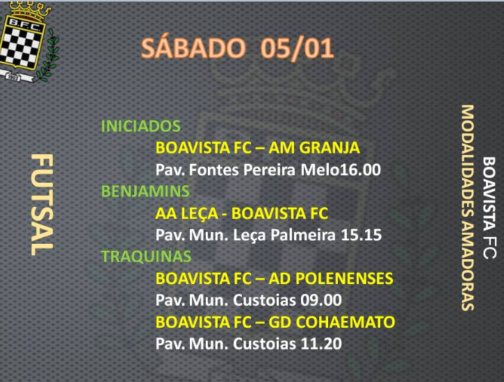 AGENDA DESPORTIVA PARA O FIM DE SEMANA DE 05/06 JANEIRO