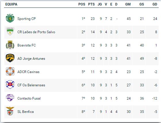 FUTSAL (SUB 20) - BOAVISTA, PERDE COM O SPORTING E A CLASSIFICAÇÃO FICA "MAIS APERTADA" MAS DENTRO DO APURAMENTO